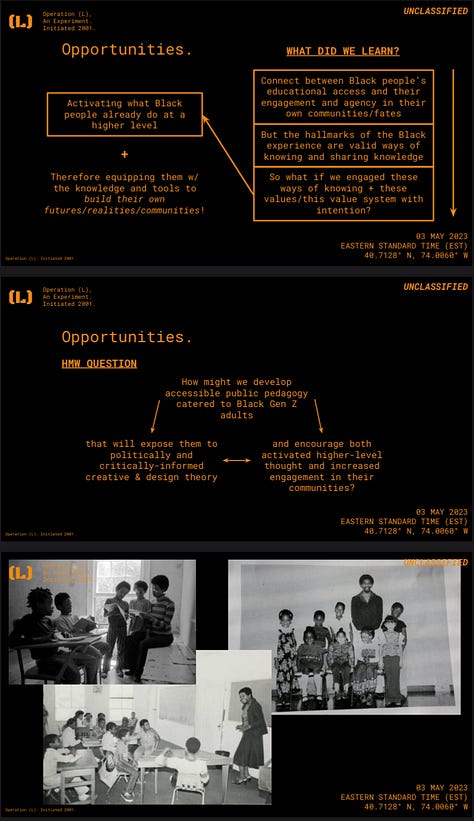 Subscribe to Substack and follow @operationl.xyz on Instagram for process and updates.